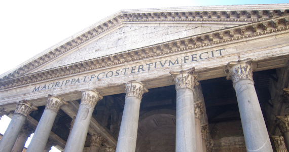 | すべての神々へ捧げるという意味の名前を持つ紀元前27年のちのアウグスト皇帝の娘婿のアグリッパによってにたてられた神殿。 ローマの大火によって消失したものを紀元後120年ごろアドリアノ皇帝が再建したものが現在見られるもの。その時代の神殿がありのままのすがたを今もなおほぼ完璧な状態で現存している驚異的な建造物。 内部には、歴代のイタリア国王(サボイ家)や、画家ラファエッロのお墓などがある。 |