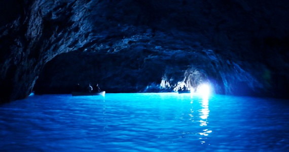 | 海路→カプリの高速船が泊まる玄関口であるマリーナグランデ(大きな港という意味)に、 青の洞窟行きのモーターボートの乗り場があるので、そこで切符を購入し、 モーターボートにのって約20分で青の洞窟の前につきます。 モーターボートの出発時間は不定期で、船がいっぱいになったら出発します。 青の洞窟前で待ち構えている手漕ぎボートに乗り換え、洞窟にはいります。 洞窟の入場料と手漕ぎボートの料金は、洞窟前で支払います。 シーズン中は特に混雑していて、洞窟前で長時間待つことがありますので、 船酔いしやすい人はあらかじめ薬をのんでおくほうが懸命。 陸路→アナカプリの終点のバス停からでている青の洞窟行きのバスにのり終点で降り、 洞窟前の階段を降りて、そこから手漕ぎボートに乗ります。 カプリ地区から向かう場合は、カプリからアナカプリまでバスにのり、乗り換える必要があります。 陸路のほうが時間がかかりますが、船の上で長時間待つということはないので、 船酔いが心配な人にはこちらをおすすめ。 |