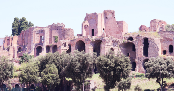 | コロッセオ横に広大な楕円形をした広場があり、ローマ帝国時代には、2頭だて、4頭だての馬車の競技が行われていたところ。前方にパラティーノの丘にあるアウグスト邸の邸宅と呼ばれる歴代の皇帝の住居のあとがあり、ローマ帝国の栄華を感じさせる、一番ローマらしい写真の撮れるフォトスポット |