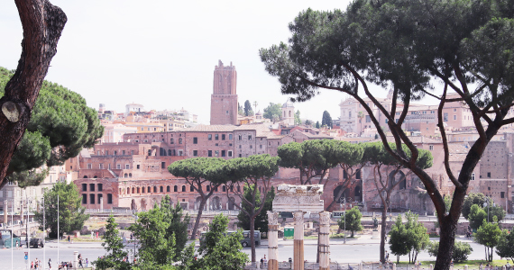 ▶ フオーリインペリアーレ通り、ベネチア広場からローマ帝国時代の遺跡(トライヤヌスの市場、