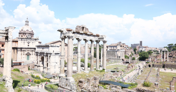 ローマ中心地には、徒歩で歩くだけでローマ帝国時代の本物のの遺跡があちこちに見られる街です。